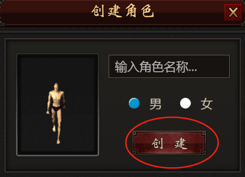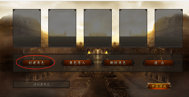 3、进入游戏“选角”,创建角色名,点击开始游戏。