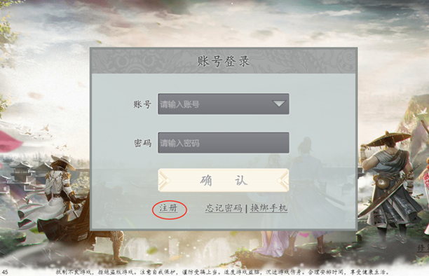 1、进入游戏后,进行账号注册,登录游戏。
